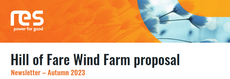 Please find attached the latest flyer on the Hill of Fare Windfarm, as supplied by the developer (RES).
