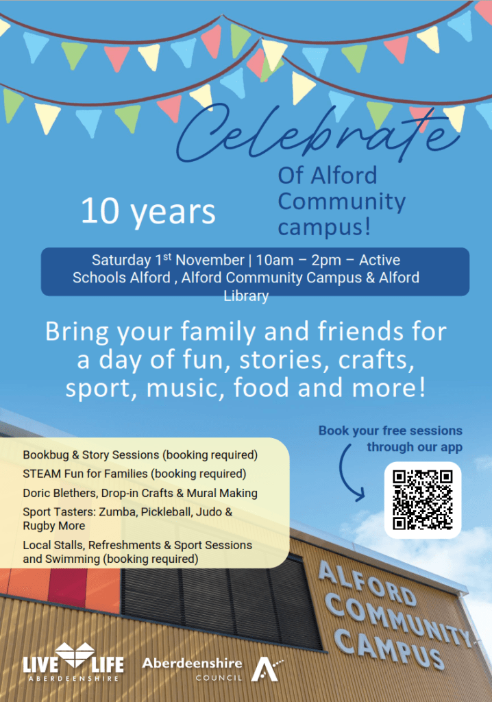 We have some exciting news as we will be celebrating 10 years of Alford Community Campus on Saturday 1st of November between 10-2pm.
