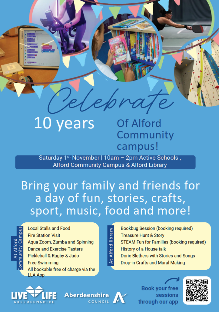 Active Schools, Life Live Aberdeenshire, and Alford Library have organised various sessions for all ages and all the activities are FREE!!!