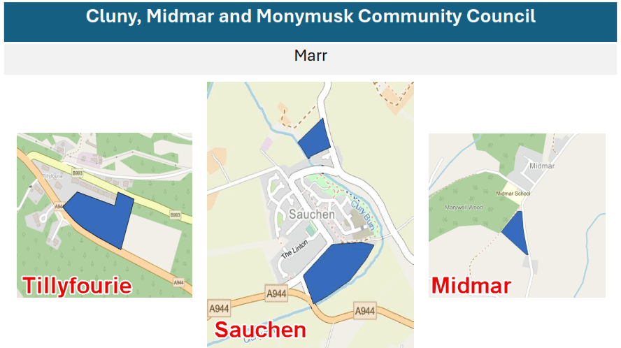 Current developer proposals for this community council area (as submitted in the call for sites part of the process) are as follows, more details on this website.