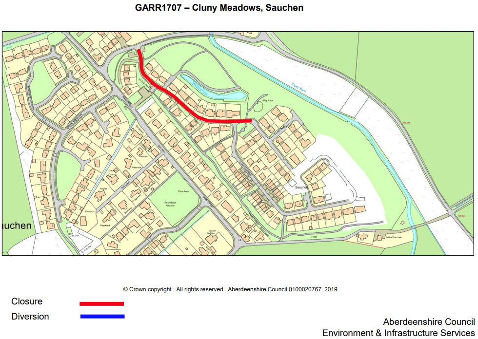 The council has notified that the access road to the Cluny Meadows estate will be closed for 5 days from Mon 18th to Fri 22nd May.