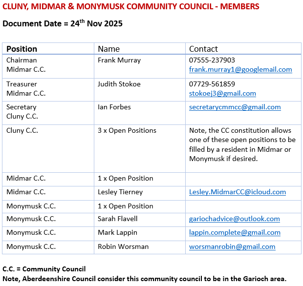 Cluny, Midmar and Monymusk Community Council